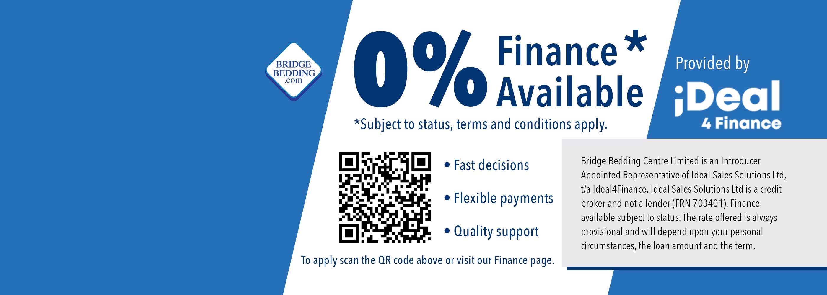 At Bridge Bedding Centre Limited, we understand that many customers may prefer the option of paying with finance, That's why we're proud to be partnered with established credit brokers, Ideal4Finance, to enable you to spread the cost of your purchase with manageable monthly payments.