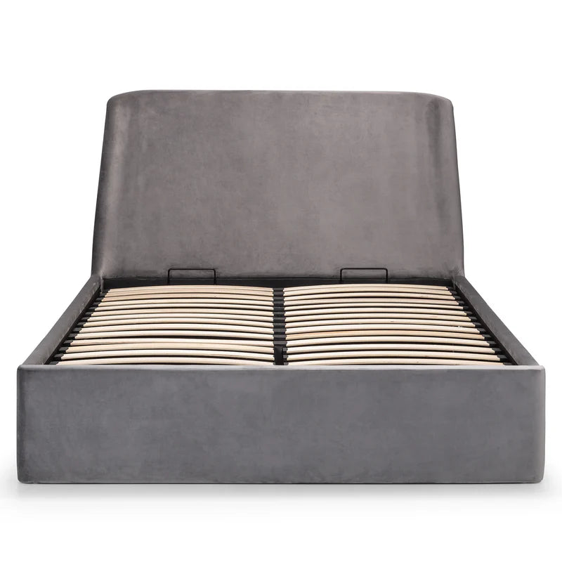 Showcasing a beautifully curved headboard, the Frida bed combines refined elegance with everyday comfort. The plush velvet upholstery paired with sleek black legs creates a contemporary look, making it a standout feature in any bedroom. Also available in an ottoman option, it’s an ideal choice for smaller spaces, offering practical hidden storage. Choose from two stunning colour options: teal or grey.